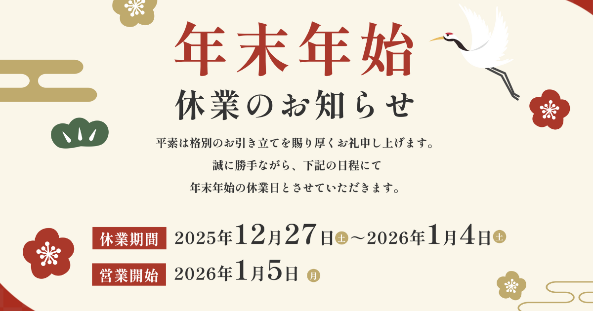 年末年始休業につきまして、下記ご案内を申し上げます。